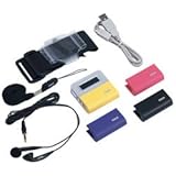 Features:512 MB flash memory Â- stores up to 21 hours of music as well as being a data storage device.Flash memory requires no moving parts so you are able to listen to skipless audio playback.Audio playback - mp3, WMA, WMA DRM, WAV, Audible, Janus compatible.Listen to several different formats of music and books.Compatible with most download and subscription-based internet services.Interchangeable cases Â- depending on your mood, you can swap the interchangeable battery case covers at a whim (4 battery covers included).PlaysFromDevice capability Â- connect and control this device via a USB connection.Listen to your secure DRM content from subscription-based services.SD card slot Â- add extra memory with an SD card (not included) or listen to audio content directly from the card.Multi-function multi-line OLED display Â- the multi-line alpha-numeric OLED (organic light-emitting diode) display is bright and clear compared to regular LCD display.Display lists artist, song, elapsed time, volume, and battery life indicator when in playback mode.Full accessory kit included Â- USB cable, armband, neck strap, earbud headphones, one AAA alkaline battery, 100 free mp3 downloads for eMusic. com, free trial offer from Yahoo! Music Unlimited and Audible. com, and Music Management Software.